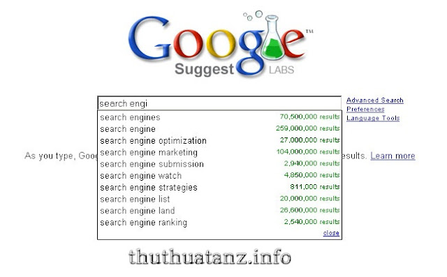 Google Suggest (hay còn gọi là Google Search Box) là một tính năng gợi ý từ khóa cần tìm của Google. Khi người dùng thao tác tìm kiếm từ khóa nào đó, Google sẽ xổ ra bên dưới 4 kết quả liên quan hoặc được tìm kiếm nhiều nhất. Từ đó giúp người dùng hoàn thiện được câu lệnh tìm kiếm của mình một cách nhanh chóng và chính xác. Tăng like fanpage facebookCách tạo Google Suggest